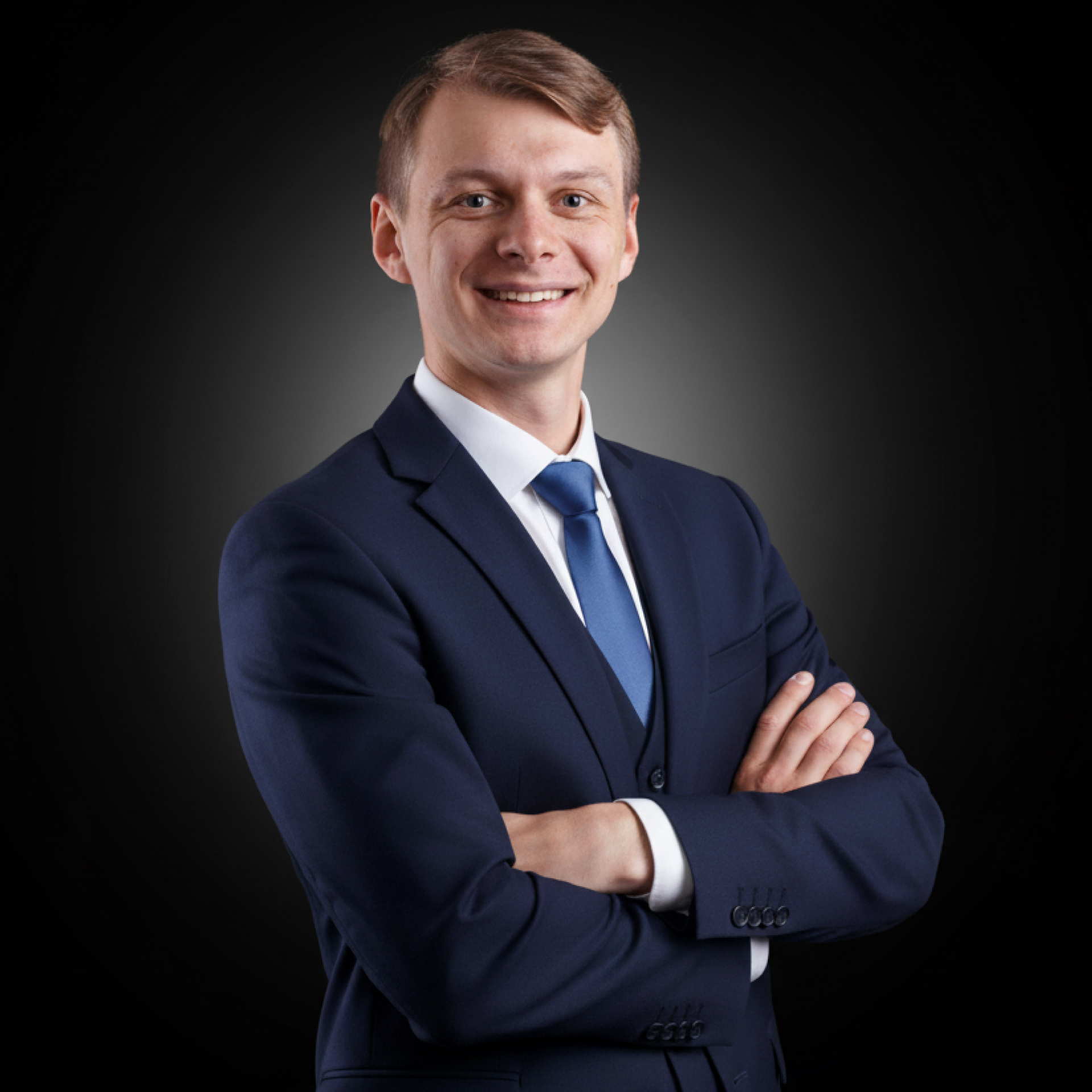 A dark background keeps the focus on the face and figure, reducing distracting elements. It is frequently used in PR materials, LinkedIn profiles and ‘About us’ sections, underlining the professional character of the photograph.