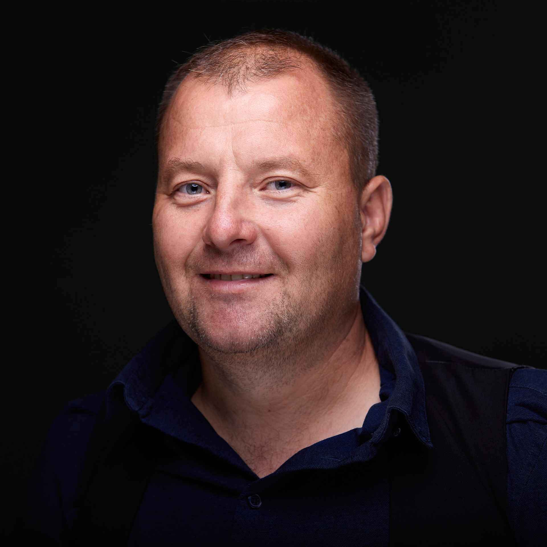 Ciemne tło skupia uwagę na twarzy i sylwetce, eliminując elementy rozpraszające. Jest popularne w materiałach PR, profilach LinkedIn i sekcjach "O nas", podkreślając profesjonalny charakter zdjęcia.
